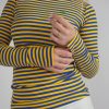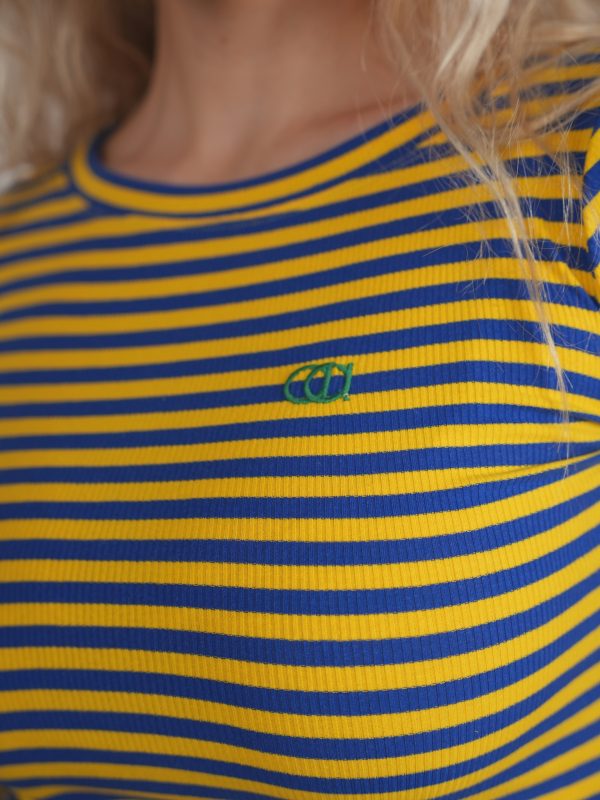 A striped t-shirt with a logo, long sleeves, and a fitted silhouette. A comfortable and flattering design, perfect for a casual look with a stylish touch.