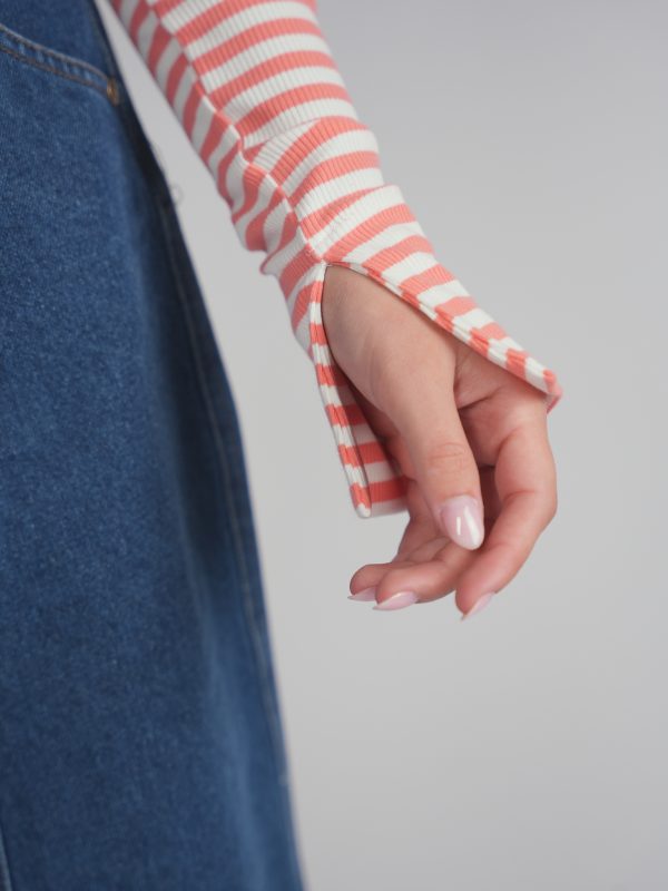 A striped t-shirt with a logo, long sleeves, and a fitted silhouette. A comfortable and flattering design, perfect for a casual look with a stylish touch.