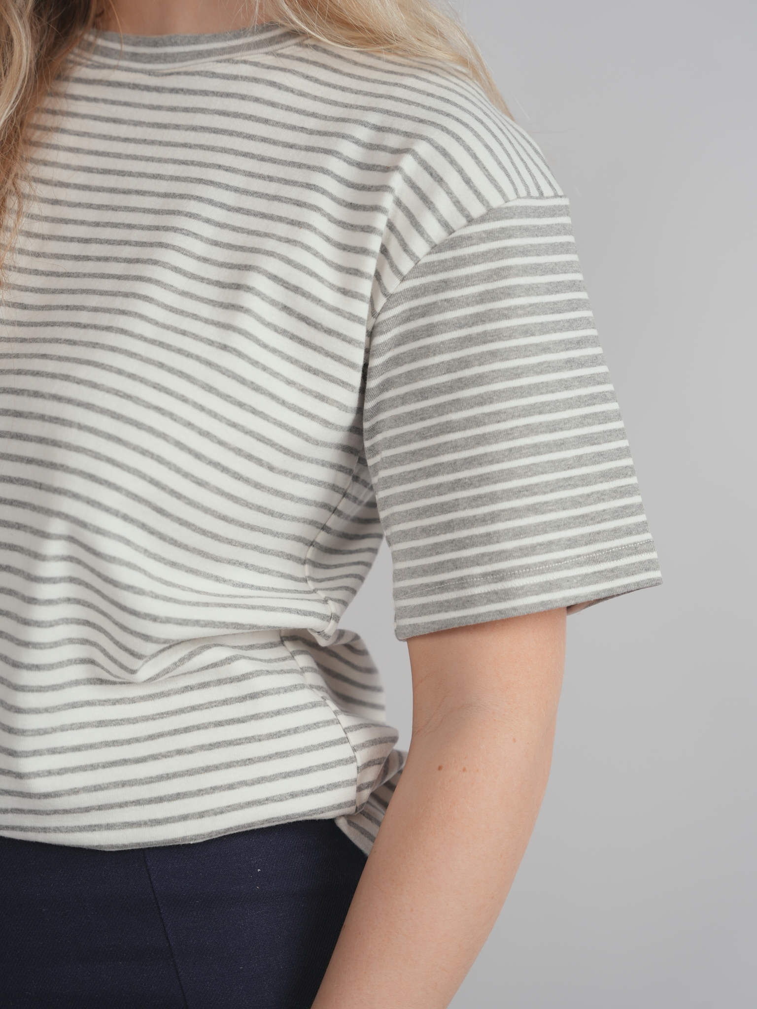 An oversized short-sleeve t-shirt with contrasting stripes. Made of soft and comfortable cotton, perfect for a casual look and everyday style.